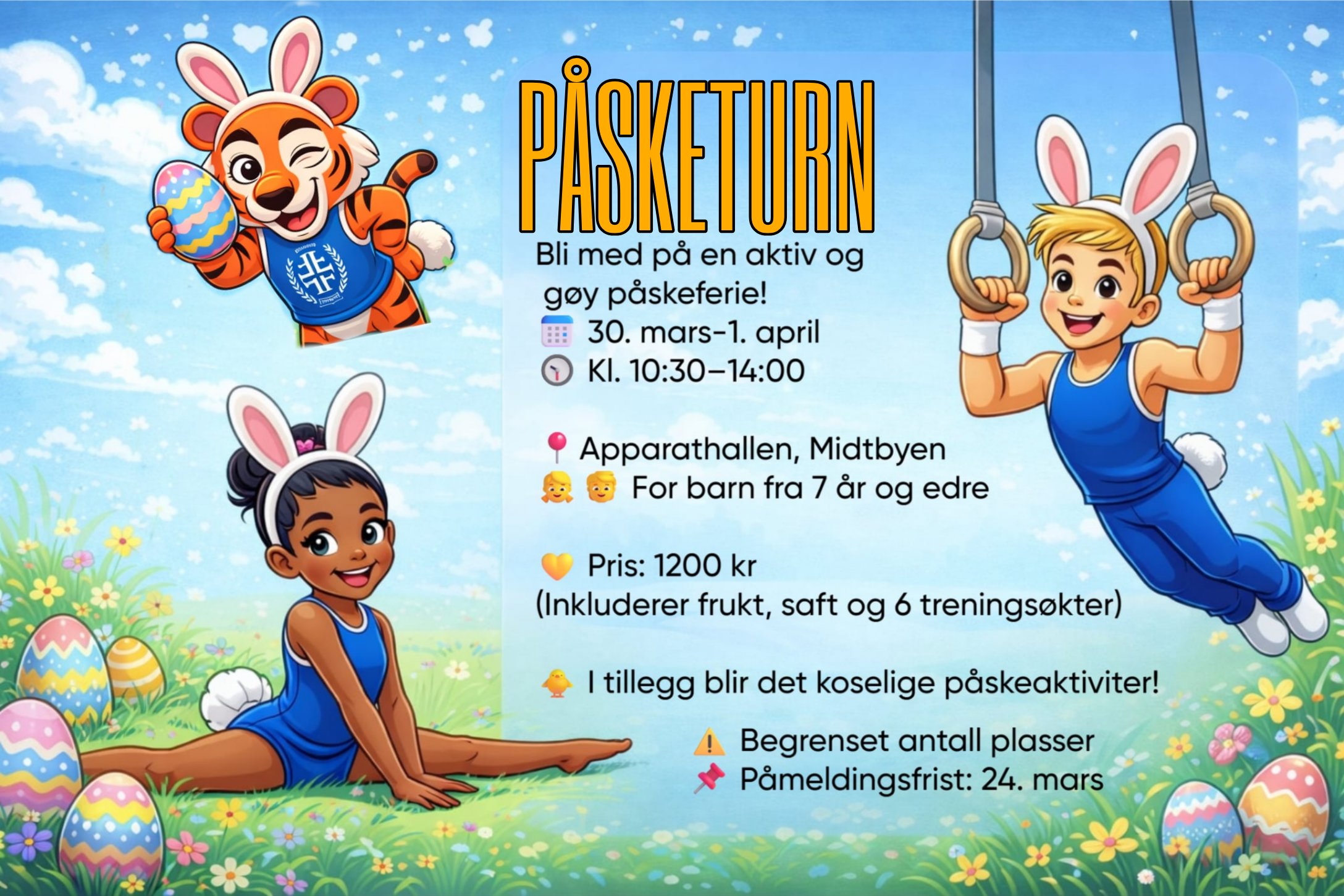 Mandag, tirsdag og onsdag i påsken arrangerer vi drop-in for hele familien i vår turnhall i Granåsen, Smistadveien 9-11. Om du ikke er på hytta eller annen ferie er du velkommen til å leke med familie eller venner i turnhallen.